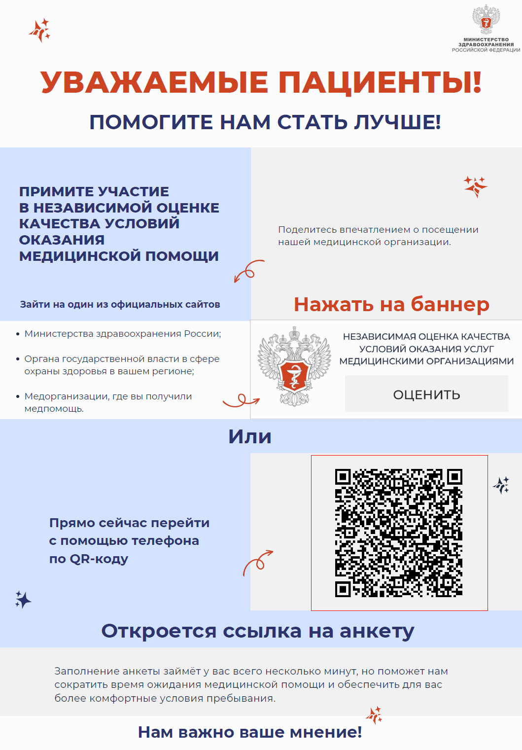 Анкета для оценки качества условий оказания услуг медицинскими организациями в амбулаторных условиях